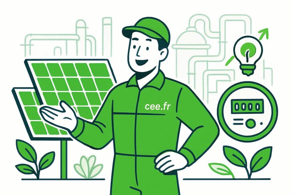 Les Certificats d’Économies d’Énergie (CEE) constituent un levier central pour réduire l’investissement initial. Leur attribution repose sur des fiches d’opérations standardisées qui définissent les critères techniques, les gains attendus et les documents justificatifs requis. Pour les industriels, les CEE peuvent financer des opérations sur les process, l’isolation, l’éclairage et la substitution d’équipements énergivores.
